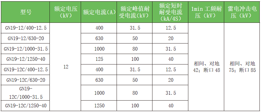 GN19-12(C) 户内高压隔离开关适用于交流50Hz、额定电压12kV 及以下额定电流小于1250A电力系统中, 作为在有电压而无负载情况下分、合电路之用。隔离开关可配用CS6-1 型手动操作机构, 可加装带电显示装置等。